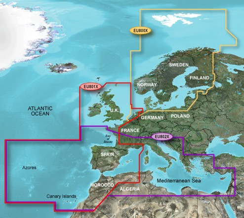 Außerdem wird die BlueChart g2 Karte erstmals auch im XLarge Format erhältlich sein und damit sehr Große Gebiete abdecken. Das von vielen Fahrtenseglern gewünschte Format deckt das Mittelmeer, den Europäischen Atlantik und ganz Nordeuropa mit nur drei Karten ab.