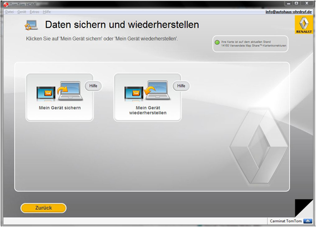 Wichtigste Funktion von TomTom Home ist die Option zur Datensicherung und Wiederher- stellung. Diese sollte nach Kauf schnellstmöglich vorgenommen werden, um im Notfall einen Datenverlust vorbeugen zu können. Zuzüglich zur genannten Komplettsicherung lassen sich auch einzelnen Bestandteile der Software auf dem Computer sichern und wiederherstellen.