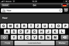 Der MobileNavigator bietet bereits während der Eingabe, unter dem Textfeld, mögliche Treffer an, die wenn korrekt, durch einen einfachen Klick ausgewählt werden können. Hier sind auch Sonderziele enthalten, die durch ein voranstehendes Kategoriesymbol gekennzeichnet sind.