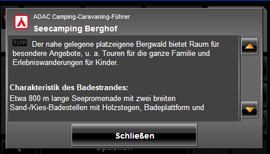 Mit dem ADAC Camping-Caravaning-Führer 2009 stehen auf NAVIGON Geräten mehr als 5.300 europäische Campingplätze verschiedenster Kategorien in insgesamt 34 Ländern zur Verfügung. Zum Angebot gehören auch die wichtigsten Inhalte aus dem ADAC Stellplatz-Führer 2009 der Infos zu mehr als 2500 Stellplätzen in 19 Ländern bietet. Beide Führer sind im Paket zu einem Preis von 19,95 EUR erhältlich.