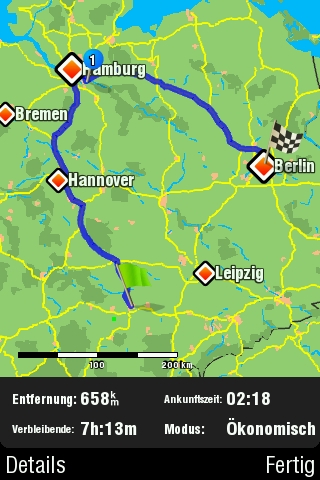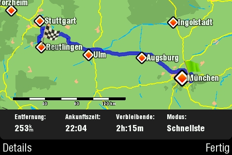 Durchweg überzeugt hat die Routenplanung von Sygic Mobile Maps. Hier wurde an alles gedacht. Es können Planungen von A nach B, inkl. der Eingabe von mehreren Zwischenzielen durchgeführt werden. Selbiges gilt für das Einfügen von POIs und das Übernehmen der Favoriten. Die Reihenfolge der verschiedenen Ziele ist veränderbar.