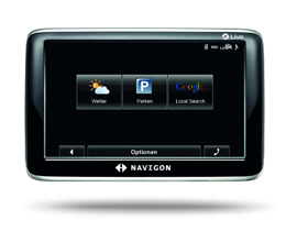 Durch das NAVIGON Live Modul lassen sich Echtzeit-Informationen zur Verkehrslage, zur Zahl freier Parkplätze, die Position von mobilen Radarmessgeräten und aktuelle Wetter- informationen abrufen. Auch eine Suche nach Sonderzielen an einem beliebigen Ort ist damit möglich.