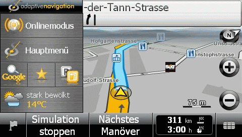 Betrachtet man hier die Mitbewerber bei den Online-Geräten, bietet MEDION hier die detailliertesten Informationen. Bei einer Wettervorschau von 3 Tagen, hat es zwar einen weniger als TomTom (NAVIGON nach bisherigen Infos nur 2 Tage), bietet dafür aber für jeden Tag eine komplette 3 Stunden Übersicht an und erleichtert so die Tagesplanung immens.