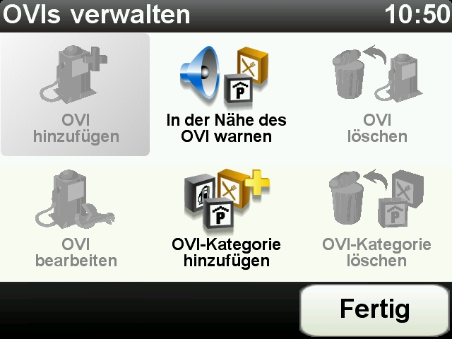 Sehr erfreulich ist die ausführliche POI Verwaltung. Dank MapShare können systemeigene POIs editiert werden. Darüber hinaus besteht die Möglichkeit eigene Kategorien mit entsprechenden POIs zu erstellen. Oftmals hat der User den Wunsch herstellerfremde POI-Overlays zu nutzen. Auch diesen Wunsch wird der TomTom NAVIGATOR 7 gerecht. So können beispielsweise die POIs von www.pocketnavigation.de eingebunden werden.