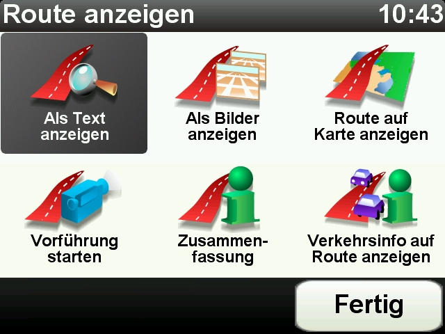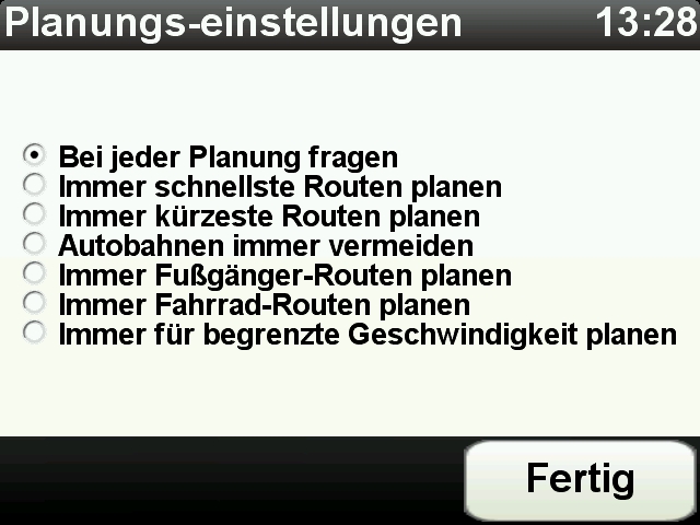 Neben der herkömmlichen Routenplanung von A nach B kann auch eine detailierte Route, bestehend aus mehreren Zwischenzielen geplant werden. Für beide Varianten benötigt man keinen bestehenden SatFix (GPS-Empfang), was eine Planung vom Schreibtisch aus ermöglicht. Der Vorteil der erweiterten Routenplanung ist die Möglichkeit, die erstellten Routen abzu- speichern und je nach Bedarf erneut zu laden. Beginnt man die Navigation bei bestehenden SatFix, so wird vom eigenen Standort zum ersten Zwischenziel geroutet. Die Reihenfolge wird entsprechend der festgelegten Routenplanung abgearbeitet bis das Ziel erreicht wurde. Bereits angefahrene Zwischenziele werden als besucht markiert. So kann man das Navigationsprogram bei einer Pause beenden. Wird die Fahrt wieder aufgenommen, wird die Route entsprechend der Routenplanung weitergeführt.