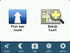 Mit nur zwei großen Buttons auf dem Startscreen gibt der neue TomTom Start den Nutzer lediglich die Möglichkeit zwischen der Routenplanung und der Anzeige der Karte zu wählen – die für einen Einsteiger wichtigsten Funktionen sind so deutlich herausgestellt. Weitere Optionen können über eine Leiste mit kleinen Symbolen angewählt werden.