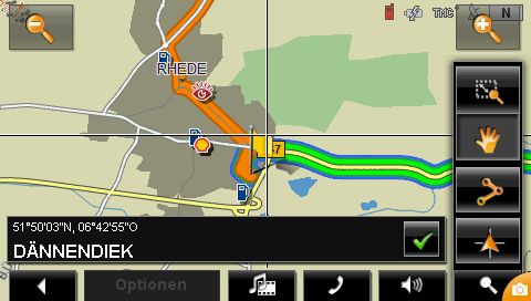 Die auf den oben gezeigten Bildern dargestellte Route sieht man nachfolgenden für einen PKW berechnet. Man kann hier gut erkennen, dass durch die Stadt Rhede geroutet wird, obwohl bei beiden Profilen die optimale Route ausgewählt wurde.