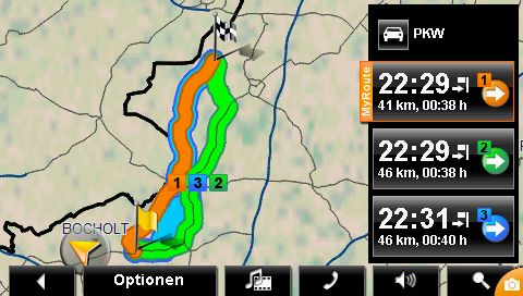 Was im Test sofort positiv aufgefallen ist: Sowohl im Routenprofil schnelle Route als auch mit optimale Route bezieht die LKW Navi Software keine kleinen Straßen mehr in die Route mit ein. Dies war häufig mit der normalen MobileNavigator Version der Fall, was natürlich für LKW Fahrer keine optimale Routenempfehlung darstellte.
