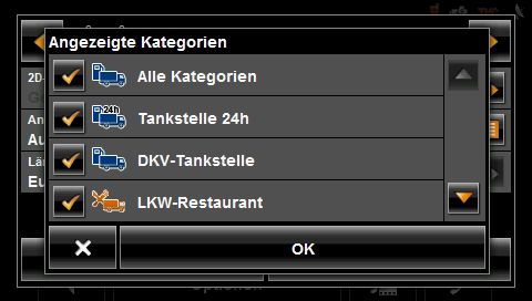 In der Unterkategorie wurden Tankstellen mit 24h Service aufgelistet, und auch das DKV-Tankstellen-Netz. Hier können große Mengen Dieselkraftstoff und andere Dinge bargeldlos mit der DKV Servicescard bezahlt werden. Die LKW Navi Software ist auch dadurch damit ein wertvolle Ergänzung, die Zeit und Nerven spart.