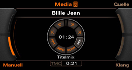 Auch für musikalische Unterhaltung ist mit dem RNS-E 2009 gesorgt. Sowohl die Auswahl der Radiosender, als auch Steuerung der einzelnen Medien geht problemlos von der Hand. Musikdateien können standardmäßig von SD/SDHC-Karten mit bis zu 32 GB Speichergröße (2 Steckplätze hinter dem Display) oder von CD abgespielt werden. Die CD Wiedergabe ist allerdings nicht möglich, wenn gleichzeitig navigiert werden soll, da dabei die DVD mit dem Kartenmaterial das Laufwerk belegt.