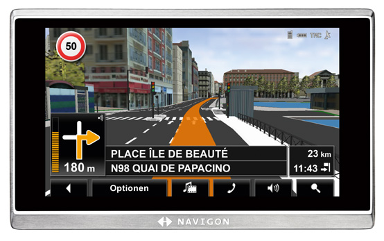 Real City3D, Voice Interaction Pro, Media-Player mit DVB-T Ready lassen erahnen, welchen Weg NAVIGON für die Zukunft einschlägt. Zukunftssicher ist die Aktualität der Karten. Die 40 Länder, welche vom Kartenlieferanten NAVTEQ bereitgestellt wurden, können über den Navigon FreshMap Service zwei Jahre kostenfrei aktualisiert werden.