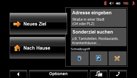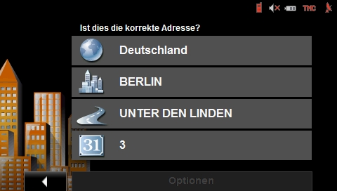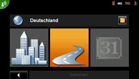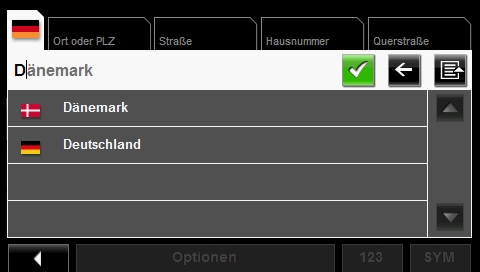 Die Zieleingabe gestaltet sich gewohnt einfach, je nach Wahl aus einem gespeicherten, einem bereits verwendeten oder auch aus einem neuen Ziel. Wie aus früheren Versionen bekannt, wählt man zuerst das Land dann die Straße oder PLZ und zum Schluss die Hausnummer oder eine Querstraße. Nicht benötigte, bzw. nicht im Adressname vorkommende Buchstaben werden hierbei ausgeblendet, was die komplette Eingabe übersichtlicher und damit einfacher gestaltet.