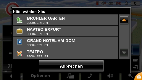 Ebenfalls nützlich, die visuelle Darstellung der Sonderziele entlang der aktiven Route oder auch im Umkreis der aktuellen Position. Letzteres wird durch das einfache an tippen des Displays mit Hilfe der Funktion POI-Klick eingeblendet.