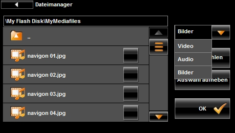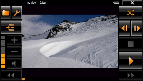 Auch multimedial enttäuscht das NAVIGON 8410 nicht. Der vorhandene Mediaplayer unterstützt in der Grundausstattung die gängigsten Bildformate wie jpg und bmp. Damit kann er problemlos als Bildbetrachter genutzt werden. Die Bilder können einzeln oder auch in einer Dia-Show wiedergegeben werden.
