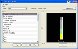 Wer nicht mehr nur mit den von Garmin vorgegebenen Stimmen durch den Verkehr gelenkt werden möchte, hat jetzt die Möglichkeit eigene Ansagen für sein Garmin-Gerät zu erstellen. Dazu bietet Garmin jetzt eine kostenlose Software zum Download an. Mit dem Garmin Voice Studio können am heimischen Windows-PC per Mikrofon für die einzelnen Ansagen die jeweils  zugehörigen Sprachanweisungen aufgezeichnet werden. Insgesamt 75 Kommandos kann das System verarbeiten.