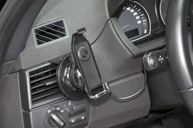 Der Brodit ProClip wurde dabei am Lüftungsgitter auf der linken Fahrerseite montiert. Brodit bietet hier für nahezu alle Fahrzeugtypen ProClips an, die an fast allen erdenklichen Positionen auf dem Armaturenbrett angebracht werden können.