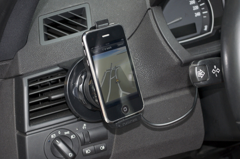 Selbst bei einem iPhone 2G ohne integriertem GPS soll die Halterung funktionieren und so die Nutzung von Navigationsprogrammen ermöglichen, zumindest sind auf YouTube Berichte dazu verfügbar. Dies wurde mangels Gerät jedoch nicht selbst von uns getestet. Für unseren Bericht wurde ein iPhone 3G sowie ein iPhone 3G S mit TomTom (iTunes Link) und dem