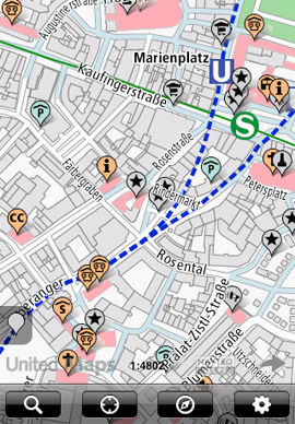 Die iPhone Navigationssoftware für Fußgänger Walk Ride von United Maps ist nach München und Hamburg nun auch für die Städte Frankfurt und Köln erhältlich.