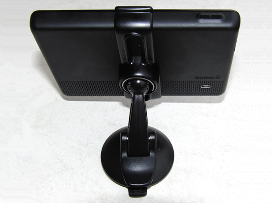 Die passive Saugnapf-Halterung umgreift das Nüvi 1490Tpro mit einer Schnappvorrichtung, die für ein sicheres Entnehmen zwei Hände voraussetzt (das Einklinken ist dagegen einhändig möglich). Die richtige Position des Navis kann man mittels eines Kugelgelenks stufenlos einstellen. Trotz des einfachen Aufbaus hält sie das Gerät sicher und zittert nicht. Fatal ist aber: Es wird nie eine aktive Halterung für das 1490Tpro geben, denn dafür fehlen dem Nüvi die nötigen Kontakte! Das Ein- und Ausstöpseln des USB-Kabels an der Geräterückseite ist also Pflicht, wenn man den Akku (der ca. 2,5 Std. durchhält) schonen und TMC nutzen will. Was vor allem bei Dunkelheit ein lästiges und teils langwieriges Herumfummeln bedeutet.