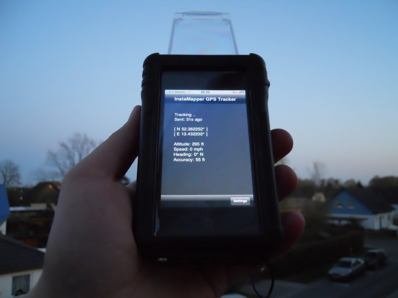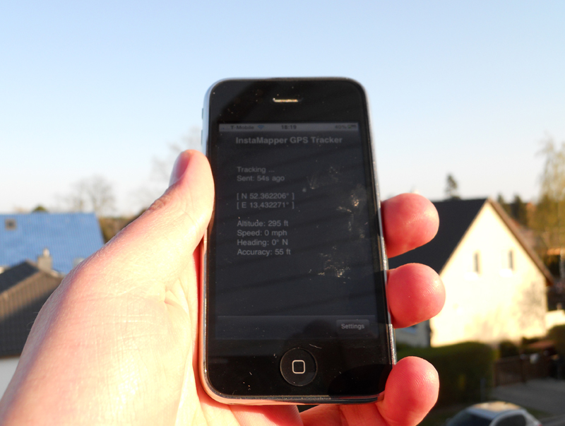 Den GPS-Empfang trübt das Gehäuse nicht, wie die untenstehenden Bilder zeigen. Auf dem iPhone 3G S wurde dies mit der Anwendung GPS Tracker überprüft. Die Genauigkeit von 55 Fuß trifft sowohl mit als auch ohne PALMCASE mirco zu.