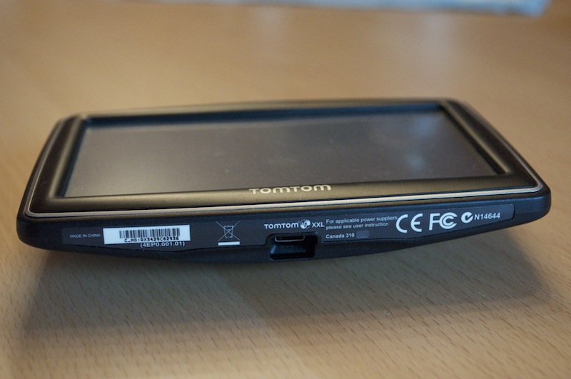 Das TomTom XXL IQ Routes ist aus schwarzem, matten Kunststoff gefertigt, der einen sehr hochwertigen Eindruck hinterlässt. Das Gerät besitzt lediglich einen Ein/Ausschalter am rechten oberen Rahmen und unten mittig angebracht einen Mini-USB-Eingang, der sowohl für Datenübertragung als auch zum Laden dient. Eine LED neben diesem Eingang zeigt den Ladezustand an bzw. ob das Gerät mit Strom versorgt wird.