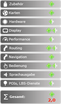 Die Informationen sind auf einen Blick deutlich erkennbar, sofern das Gerät tatsächlich einmal während der Fahrt bedient werden muss, kann dies durch Tippen mit dem Finger und nicht nur mit dem Fingernagel erfolgen.