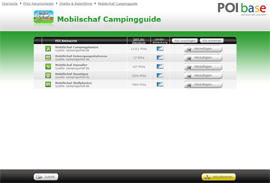 Mit der Software POIbase können alle Einträge außerdem auf der interaktiven Karte eingesehen werden. So kann bereits vor der Fahrt in den Urlaub eine Auswahl an möglichen Campingplätzen getroffen und die Reise optimal geplant werden.