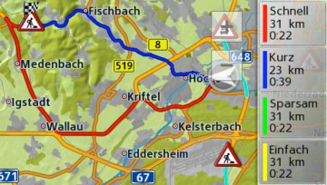 Routingoptionen: schnellste, ökonomische, kurze und einfache Route