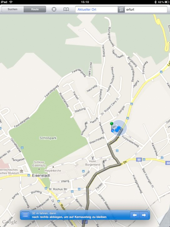 Auf dem iPad beschränkten sich unsere Tests auf Google Maps und Google Earth, die ebenfalls perfekt mit dem GNS 5870 MFI harmonierten.