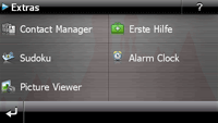 Mitgeliefert werden aber schon eine mächtige und meist ausreichende Anzahl an POIs. Diese gliedert sich in diversen Kategorien und so ist das gewünschte Ziel sehr schnell gefunden. Frei verfügbare POIs lassen sich ausschließlich über den POI-Warner importieren, eine eigene POI-Verwaltung bieten die MEDION Geräte seit jeher nicht.