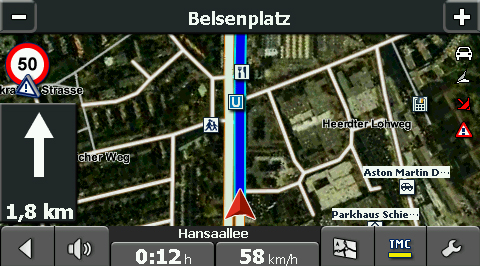 Eine Zusatzkarte von Nord-Amerika ist für das Vision 700 ebenfalls bestellbar. Im Lieferumfang des Vision 700 sind laut Falk als Highlight bereits Luftbilder für 7 deutsche Städte und 3 Städte aus Österreich enthalten. Weitere Luftbilder sind im Falk-Shop erhältlich. Da die Bilder in einer festen physikalichen Auflösung vorliegen, werden sie beim Zoom-IN unscharf und pixelig. Wenn man den sonst nützlichen Auto-Zoom Modus verwendet, wird das Ganze mit Luftbildern bei den hohen Zoom-Stufen sehr unschön. Die Luftbilder verbrauchen zu dem sehr viel Speicherplatz auf dem Gerät.