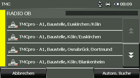 Bereits vorliegende Verkehrs-Informationen die das Navi per TMC/TMCPro empfängt werden direkt in eine Routenberechnung einbezogen. Treten Verkehrsstörungen währen eines laufenden Routings auf, wird die dazu gehörende Meldung per Text-To-Speech vermeldet und auch optisch angezeigt. Der Nutzer kann anschließend auswählen, ob die Störung im weiteren Verlauf der Route berücksichtigt werden soll. Das Navi berechnet dann eine, falls vorhanden, sinnvolle Ausweichroute. Staus können so in der Regel sicher umfahren werden. Das Navi bietet zeitgleich mit der Meldung über eine Störung auch eine Prognose über den voraussichtlichen Zeitverlust durch die Störung an, für den Fall das man das Ganze nicht umfährt. Die Erfahrung zeigt, dass man ein Umfahrungsangebot durchaus auch dann annehmen sollte, wenn der ermittelte Zeitverlust auf der originalen Route kleiner ist, als der auf der neu berechneten Ausweich-Route.