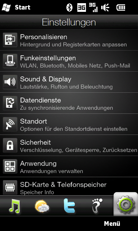 Der kapazitive LCD Touchscreen ist auf reine Fingerbedienung ausgelegt, ein regulärer Eingabestift hilft nichts. Die Finger reichen für die Bedienung von HTC Sense und für die meisten Funktionen von Windows Mobile 6.5. Schwieriger wird es beispielsweise bei schneller Texteingabe über die virtuelle QWERTZ-Tastatur oder falls man in die Tiefen der Windows Mobile Einstellungen bei Drop-Down-Menüs hinabsteigen muss. Hier tippt man mit dem Finger trotz des großen Displays leicht daneben und erzielt unerwünschte Ergebnisse. Zudem war HTC bei der Entwicklung von HTC Sense nicht bis ins Letzte konsequent. Zwar sind die wichtigsten Einstellungen (Settings) mit einer fingerfreundlichen, Android-ähnlichen Menüstruktur unterlegt, aber eben nicht alle. Für System-Feineinstellungen wie Ländereinstellungen oder Externes GPS muss in der HTC-Sense-Einstellungsmaske die Funktion Mehr aufgerufen werden, die auf die Windows Mobile Oberfläche und Menüs zurückgreift und einer Fingerbedienung eher abträglich ist.