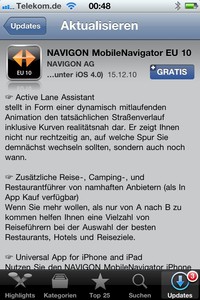 NAVIGON Mobile Navigator im iTunes AppStore bereit gestellt. Der 840 MB große Download aktualisiert die Anwendung auf die Version 1.7.0. Gleichzeitig hat Navigon den Preis vieler MobileNavigator Pakete wieder reduziert. So kostet das