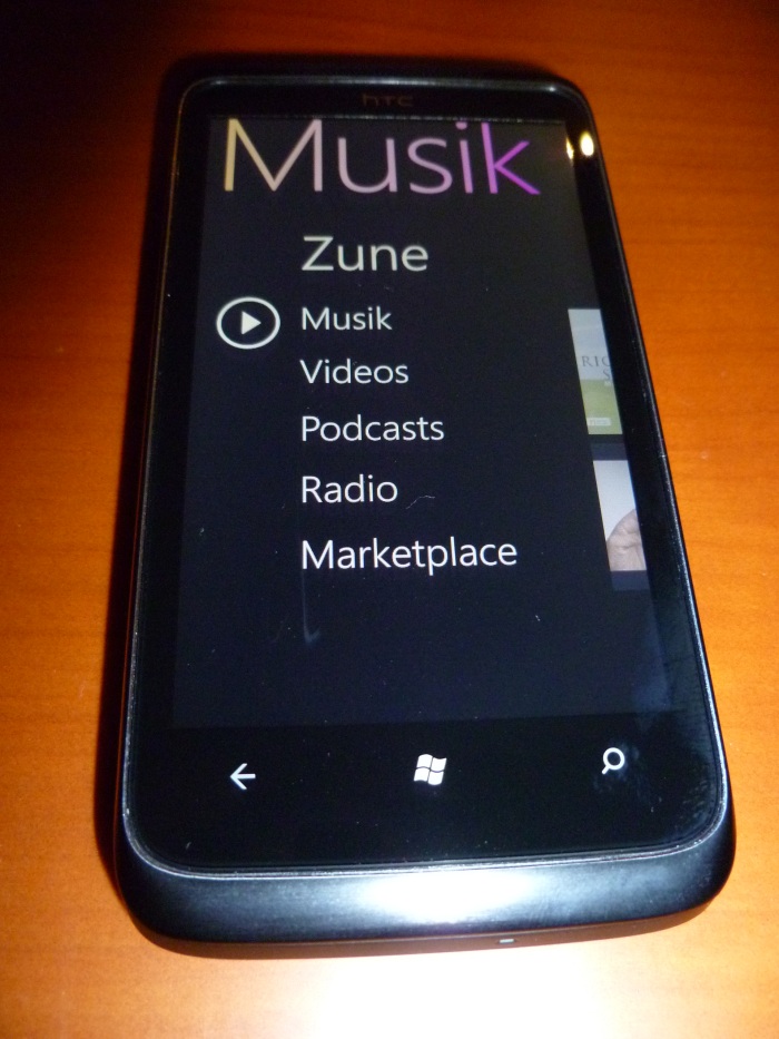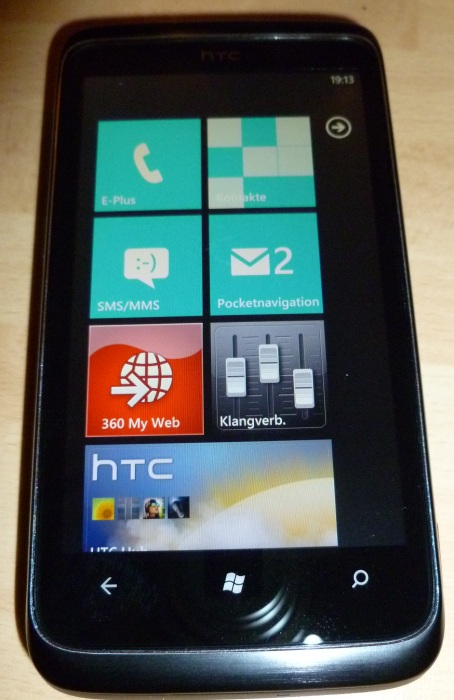 Die Bedienung unter Windows Phone 7 ist denkbar einfach und durchdacht. Drei Hardwaretasten sind für „Zurück?, „Startbildschirm? und „Suche? zuständig. Diese hat HTC um eine Lautstärkewippe und eine Kamera-Taste ergänzt.