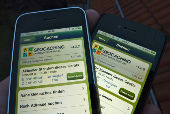 Bei dem verbauten GPS-Empfänger handelt es sich um eine SiRFstarIII Patch Antenne, welche bis auf 3 Meter genau sein soll. Davon waren wir im Test in optimaler Umgebung weit entfernt. Das iPhone 3GS verfügt bekanntlich über keinen besonders guten GPS Empfänger, mit dem beim Geocachen eine Genauigkeit von gerade einmal 17 Metern erzielt werden konnte. Mit dem GPS-Empfänger des ToughCase wurde dieser Wert auf 10 Meter verbessert. Das ist zwar ausreichend für eine grobe Orientierung, für spezielle Outdoor-Aktivitäten wie Geocaching aber nur bedingt ausreichend! Ein von uns als Referenzgerät genutztes iPhone 4, kam unter gleichen Bedingungen auf eine Genauigkeit von 5 Metern.