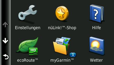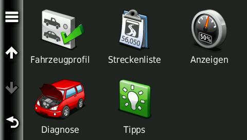 Sobald sich das Nüvi mit dem HD-Adapter verbindet, ändert sich das ecoChallenge Menü automatisch in das ecoRoute-HD Menü, ebenso wird der Menüpunkt Anzeigen und Diagnose sichtbar.