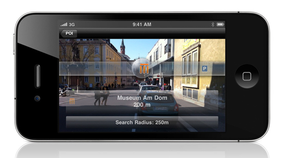 Das für iPhone Nutzer ebenfalls neue Feature Reality Scanner blendet in das Live-Bild der iPhone Kamera Sonderziele ein, die sich in der Umgebung zur aktuellen Position befinden. Auf dem Display erscheint dann der Name, ein Symbol und die Entfernung zum Sonderziel. Durch einen Klick auf den jeweiligen POI kann der Nutzer weitere Informationen erhalten und sich zum Ziel leiten lassen. Der Reality Scanner kann über die Sonderzielsuche aufgerufen werden oder schaltet sich automatisch ein, sobald im Fußgängermodus das iPhone in die Vertikale gedreht wird.