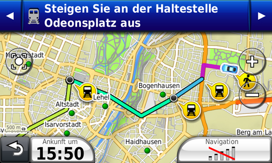 Die Garmin cityXplorer Stadtpläne enthalten detaillierte Informationen für die Fußgängernavigation. So sind nicht nur Straßen in Städten und Ballungsgebieten erfasst, sondern auch kleinere Wege durch Stadtparks und Fußgängerzonen. Zusätzlich werden auf Wunsch auch öffentliche Verkehrsmittel in die Navigation mit einbezogen.