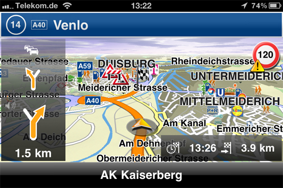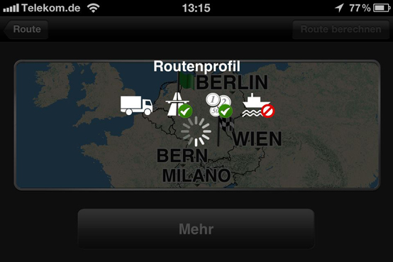 Hier kommen wir nun zum für die LKW Navigation wichtigsten Abschnitt. Die Route sollte immer so berechnet werden, das ein LKW auf dem sichersten Weg zum Ziel geleitet wird. Dafür kann durchaus auch schon mal ein Umweg in Kauf genommen werden. Dieser sollte aber widerum nicht zu lang ausfallen, denn heute zählt die Devise, Zeit ist Geld. Wir konnten die LKW-Erweiterung für das iPhone über längere Zeit testen und können mit Gewissheit sagen, dass das Routing uns bei ca. 20.000 zurückgelegten Kilometern nicht in eine brenzlige Situation, wie etwa zu niedrige Durchfahrten oder zu enge Straßen, gebracht hat.