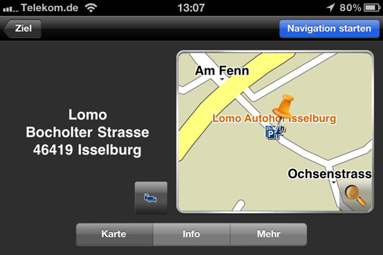 Natürlich stehen auch alle Standard POIs der NAVIGON Vollversion zur Verfügung und es kann im Internet mit der Google Suche nach weiteren Sonderzielen gesucht werden.