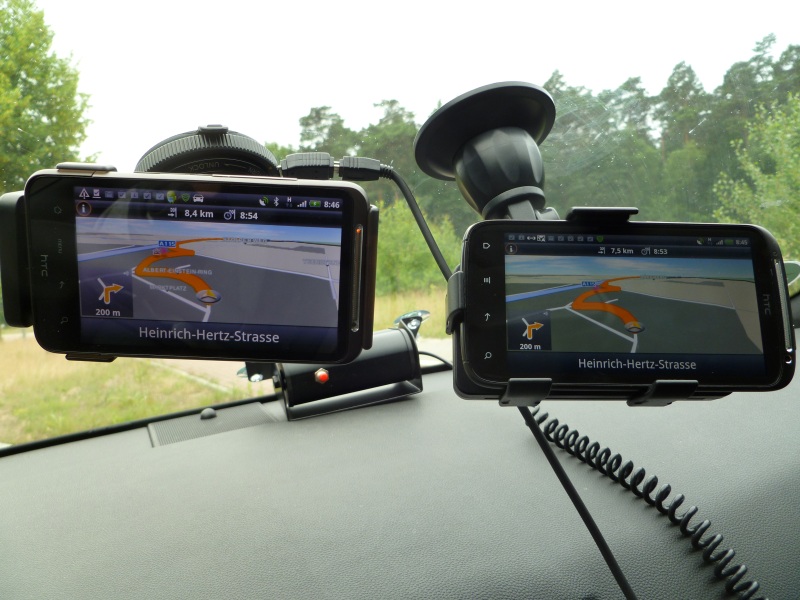 Wir haben das HTC Sensation mit mehreren Navigationsprogrammen getestet. Dank des separaten 3,5 mm Klinkenanschlusses können simultan Kopfhörer und Micro-USB-Ladekabel angeschlossen werden. Wir empfehlen ein USB-Ladegerät mit mindestens 1 A Ladestrom am Zigarettenanzünder.