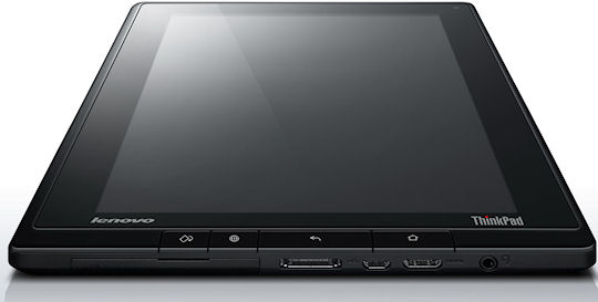 Bei einem leichten Gewichtsunterschied wiegt das Business ThinkPad Tablet nur 730 Gramm und hat die gleiche Displaygröße und -auflösung wie das Ideapad. Das Display wird aber zusätzlich durch das robuste Gorilla-Glas geschützt und es basiert auf der IPS-Technologie, die einen breiteren Blickwinkel zulässt. Reduziertes Gewicht, spezieller Schutz vor Kratzern und verbesserte Blickwinkelabhängigkeit sind sicher dem Umstand geschuldet, dass das Tablet im Geschäftstreiben eine Menge herum kommt. Eine Besonderheit bringt das ThinkPad noch mit sich: Es hat vier Hardware-Menütasten.