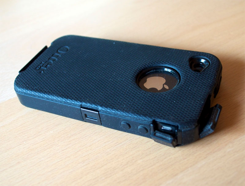 Wir müssen darauf hinweisen, dass trotz des optischen Anscheines und den sonst für OtterBox typischen Produkten die Defender-Schutzhülle nicht wasserdicht bzw. nicht einmal spritzwassergeschützt ist. Dadurch, dass Microphon und Lautsprecher offen bleiben, kann man das iPhone auch in der Hülle uneingeschränkt zum Telefonieren oder Musikhören verwenden. Dieser Komfort geht jedoch zu Lasten eines umfassenden Schutzes. Primär schützt die OtterBox Defender das iPhone 4 vor Staub und insbesondere Beschädigungen.