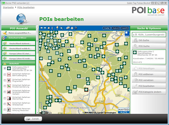 CC-BY-SA Lizenz. Damit der Datenbestand weiter wächst und eine möglichst vollständige Abdeckung dieser wichtigen Rettungspunkte erreicht wird, können fehlende Punkte über POIbase schnell und einfach mit nur wenigen Klicks hinzugefügt werden.