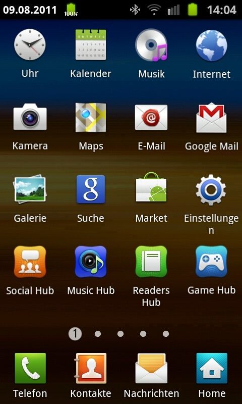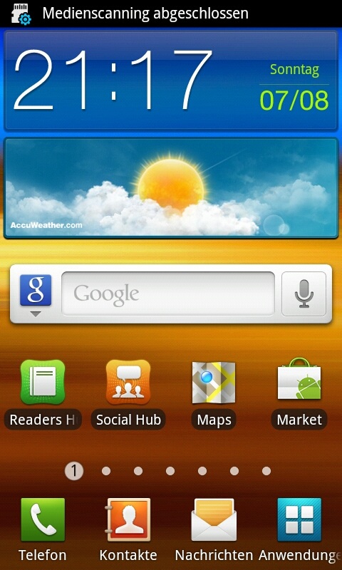 Eine reine Android-Oberfläche wird man bei den wenigsten Herstellern finden, und die firmeneigenen GUI (Graphical User Interfaces) sind meist tief in das Betriebssystem eingegraben. So hat auch Samsung dem SGSII mit TouchWiz 4.0 eine eigene Bedienoberfläche gegönnt, die Kritiker als überladen schelten; diesem Urteil können wir uns nicht anschließen. Der Startbildschirm enthält sieben personalisierbare und individualisierbare Home Screens, wobei die nach Samsungs Auffassung vier wichtigsten Anwendungen immer ortsfest bleiben (natürlich einstellbar). Einen „aktiven Sperrbildschirm″ wie bei HTC gibt es nicht; der Lockscreen tut ohne viel Firlefanz das, was er soll: Das Telefon gegen unbeabsichtigte Bedienung sperren.