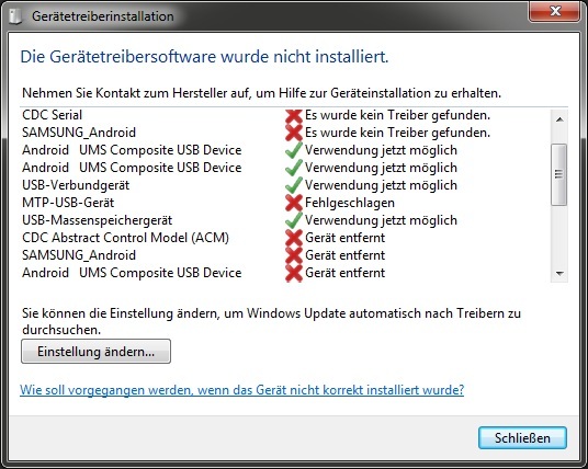 LG P990 Optimus Speed. Die Erstsynchronisation mit dem PC über USB liefert jede Menge Treiberfehler.