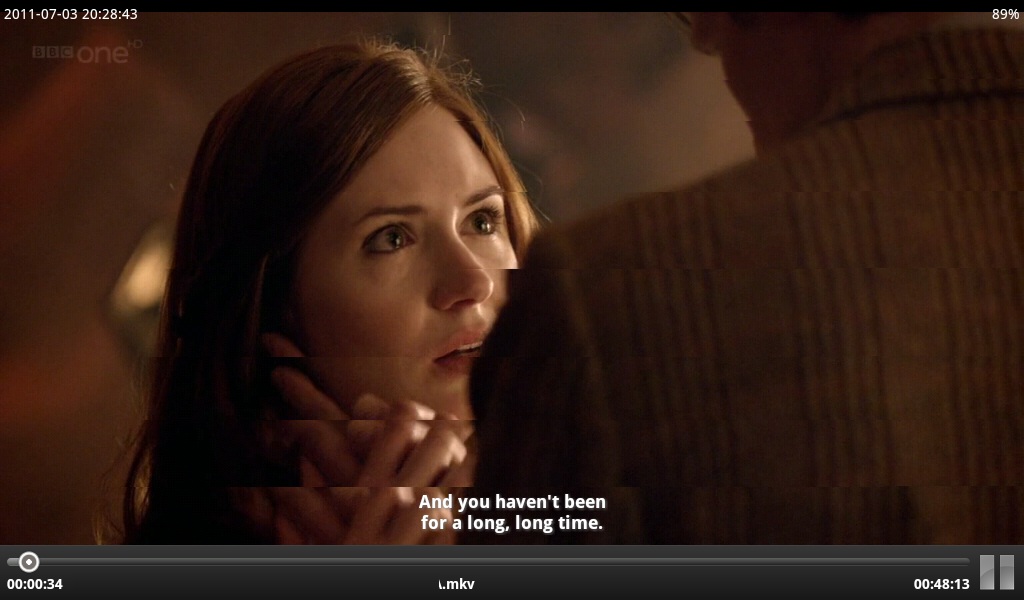 Das HTC Flyer bietet sich als Siebenzöller geradezu als mobiler Videoplayer an, auch wenn statt des 4:3 ein medienfreundliches 16:9 Bildschirmformat besser gewesen wäre. Das Flyer verarbeitet Videos in H.264 und H.263 mit den Formaten .3gp, .3g2, .mp4, .wmv (Windows Media Video 9), .avi (MP4 ASP und MP3), .xvid (MP4 ASP und MP3 → linkes Bild). Auch der Video-Player kann Dateien über verschiedene Wege versenden oder per DLNA bzw. HDMI auf Endgeräte ausgeben. Das beliebte XviD-Format spielt das Flyer ziemlich ruckelig trotz schnellen Prozessors ab. Mit dem Matroska (HD)-Container-Format .mkv kommt es überhaupt nicht zurecht. So müssen Drittsoftware-Lösungen heran, die aber alle mehr oder weniger Macken wie Ruckeln, Clusterbildung oder Asynchronität aufweisen.