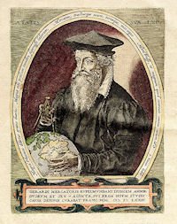 Gerhard Mercator wurde 1512 in Rupelmonde bei Antwerpen (Belgien) als Gheert de Cremere, Sohn eines Schusters, geboren und starb im Jahre 1594 in Duisburg. Er ging in ’s-Hertogenbosch zur Schule und studierte in Löwen. Seinen Namen latinisierte er, indem er der Mode seiner Zeit folgte, und nannte sich fortan Gerardus Mercator. Im Jahre 1544 wurde er der Ketzerei oder genauer gesagt der Lutherey beschuldigt und für eine kurze Zeit, vermutlich sieben Monate, eingekerkert. Acht Jahre später zog Mercator mit seiner Familie nach Duisburg, wo er dann die letzten 42 Jahre seines Lebens verbrachte. Ursprünglich wurde angenommen, sein Umzug stünde damit zusammen, dass Duisburg damals Religionsdingen gegenüber liberaler eingestellt gewesen sei, doch mittlerweile ist auch die Annahme begründet, dass ein Herzog ihn einlud, Professor an der Universität Duisburg zu sein, welche aber leider erst fast 100 Jahre später auf Grund einer nicht erteilten Lizenz des Papstes gegründet werden konnte.