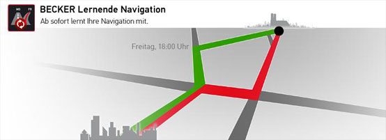 United Navigation erweitert den Funktionsumfang der Becker Navis um die lernende Navigation. Die bereits von Falk Geräten bekannte Funktion sammelte nutzerspezifische Informationen und nutzt diese um die Routenführung zu verbessern.